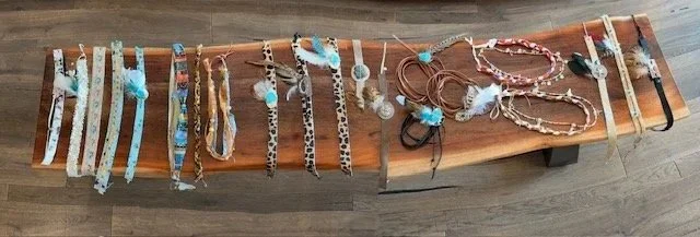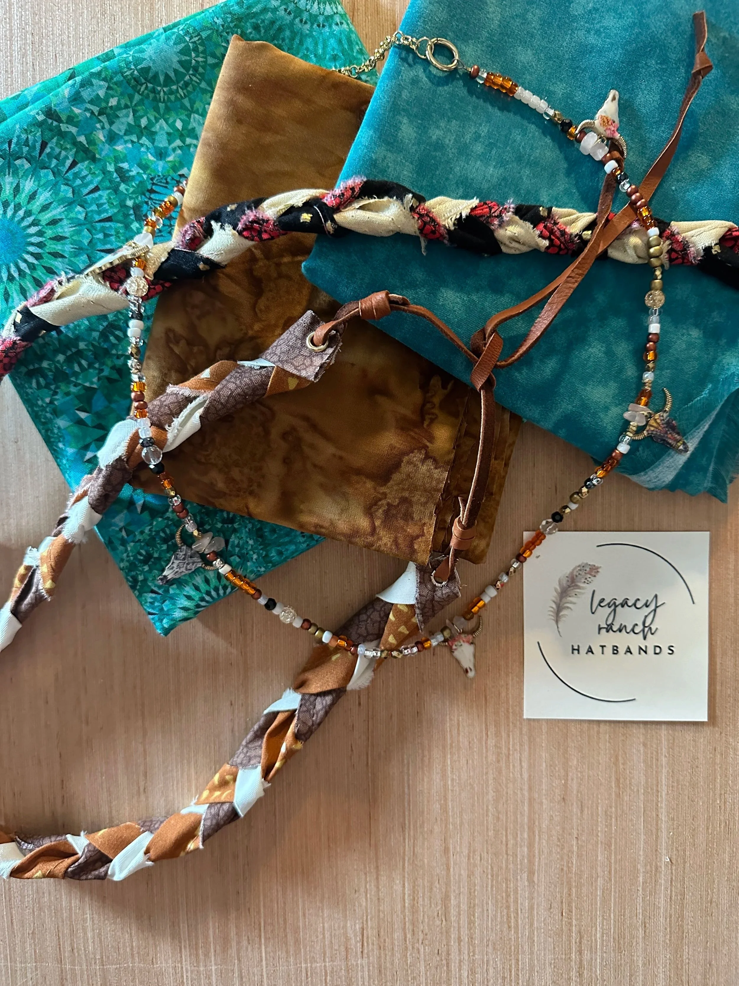 We work multiple sources to find the best fabric, leather, skins, beads, feathers and jewelry to create unique hatbands that stands out for your western or summer hat.